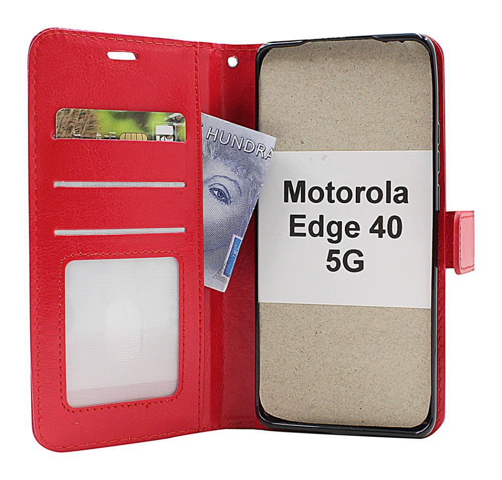 Crazy Horse Standcase Wallet / Mobiltaske / Mobilcover med pung til Motorola Edge 40 5G