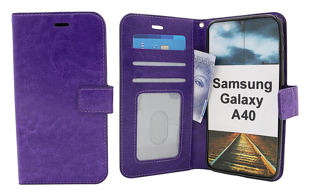 Crazy Horse Standcase Wallet / Mobiltaske / Mobilcover med pung til Samsung Galaxy A40 (A405FN/DS)