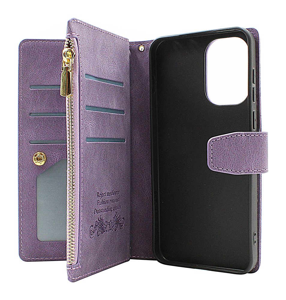 Dette luksuriøse mobilcover kombinerer stil og funktion i én smart løsning. Med hele 9 kortholdere, standfunktion og lynlåslomme er det perfekt til dig, der vil samle mobil, kort og småting i ét og samme cover.