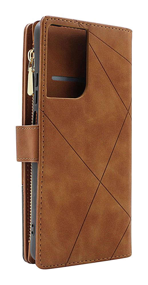 Dette luksuriøse mobilcover kombinerer stil og funktion i én smart løsning. Med hele 9 kortholdere, standfunktion og lynlåslomme er det perfekt til dig, der vil samle mobil, kort og småting i ét og samme cover.